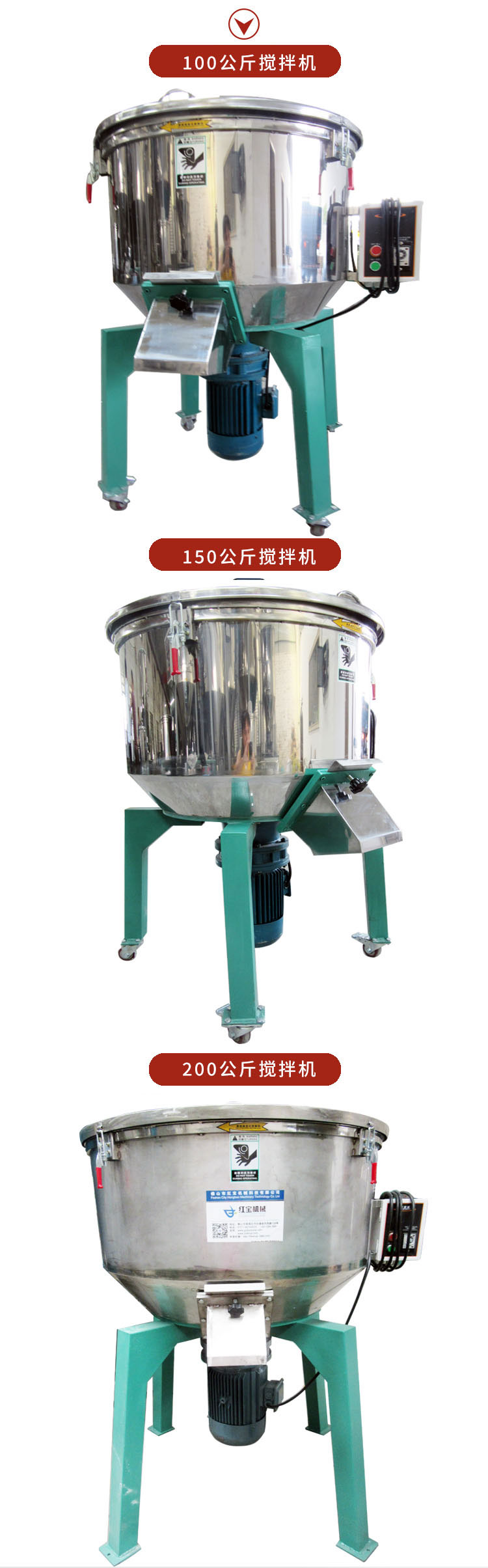 100kg食品小型立式拌料機 |小型拌料機 |不銹鋼立式拌料機桶體沖壓成型耐用密封好,佛山紅寶機械專業(yè)生產(chǎn)各種小型拌料機,桶體采用201不銹鋼,沖壓成型制作!